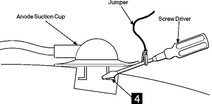 Before removing any CRT, discharge all stored potential that may exist on the CRTs anode button or base socket pins and the capacitor in the high-voltage supply. The procedures for discharging CRTs are explained in "High Voltage Discharge Procedure" as part of the steps in removal and replacement. To avoid any shock hazard when working in the area of the high voltage anode lead, use the following to discharge the CRT to ground: Screwdriver (part 1650855 or equivalent) Jumper (part 7838690 or equivalent) with alligator clip (part 7838688 or equivalent) attached to each end; or Meter Lead Kit (part 6428104). HV Discharge Procedure [Remove / Replace CRT] Read the complete discharge procedure before starting; then continue in the order given. 1. Power off system and display, and disconnect all cables (see 1.1.3). 2. Remove tilt swivel stand. 3. Remove rear cover . 4. For display models 8517 and 9517, connect jumper between shield around the integrated tube component and the uninsulated part of the screwdriver shaft as shown in Figure 3-6. This will discharge the anode of the CRT 1 to the ITC shield (ground). Figure 3-6. CRT Discharge Connection for 8517/9517 Displays ![]() 6. Do not touch any conductive parts when discharging high voltages. Insert the blade of the screwdriver under the suction cup until the end touches the anode lead connector 4 . Figure 3-7. Discharge High Voltage to CRT Ground ![]() 7. Do this several times to ensure a complete discharge. 8. Carefully remove the anode suction cup from the CRT. Note: Remove anode