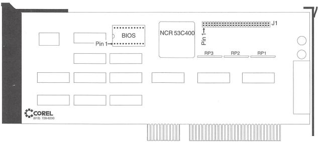 @611E.ADF Corel SCSI ver 1 Installation Manual and Supplemental Materials [thx to Trixter] ![]() NOTE: J1 is NOT shrouded. For LS2000 MCA interface cards, the colored wire must be toward the front of the computer. RP1-3 Resistor Packs |