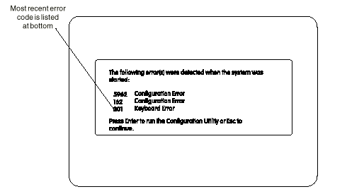 Ÿ If any POST errors are recorded, the POST Error History is displayed with the most-recent error shown at the bottom of the list.
