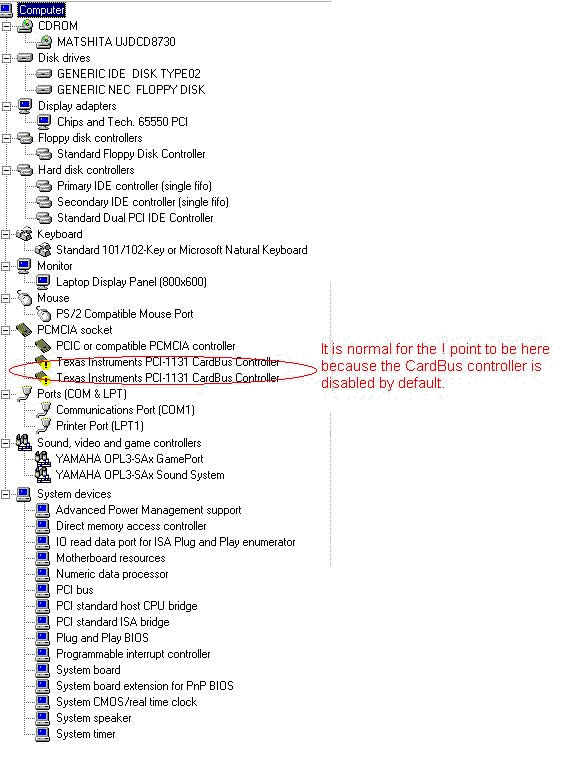 This is the default listing for Device Manager under Windows 95 for the ThinkPad 310ED and 315ED