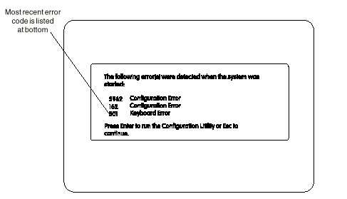 The system board retains the last three POST error codes in a POST Error History saved in CMOS memory. Each time a POST error code is detected at the power-on/power-off cycle, it is added to the bottom of the list in the POST Error History.