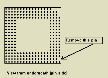 4) Remove the pin indicated below from the Pentium Overdrive.. (Not recommened)
