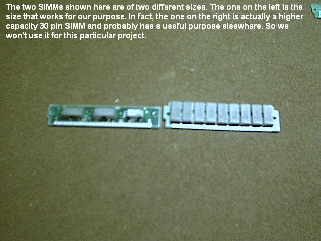 Requirements: Some self confidence and a careful hand are also highly recommended. 1. Start by getting your PS/2 out in a well lit location free of places where parts can wander off and not be seen again. Get the drive you plan to install, the 256K SIMMs you plan to use (you'll need two of them for this) as well as the screws you plan to use. Finally, make sure you have a screwdriver of the appropriate type. 2. Remove the cover from your PS/2. Set it aside in a safe location where it won't fall and possibly break. 3. Take a look at your SIMMs. They must look like the circled example in this picture: 4. As per the picture, set your CD-ROM drive up so you can clearly see the screw holes in the side of it. What we're most interested in now is the hole that I have marked with a circle in the above picture. Why? Because the SIMM has a hole punched in it and what we're going to do next is to line that hole up with the screw hole in the CD-ROM drive. 5. Now I've actually fastened the SIMM onto the CD-ROM drive side. I didn't take a picture of the actual process for the other side, but it should be self-explanatory as to what to do on the other side. Note: As you can see in the picture above, the SIMM is placed so that the its connecting pins face toward the top of the drive. This is done so that the screw hole and the hole cut in the SIMM line up. If you don't do it this way, then you won't be able to fasten the SIMM to the drive. Before you go on to step 8, make sure you have set the SCSI ID (or IDE master/slave setting for the Model 40sx) appropriately, as it may not be easy to reach and change when the drive is installed. 8. With the "bezel cage" removed, proceed to mount the drive. Again, be sure to go slow and be careful. 9. Put the "bezel cage" back into place and align your CD-ROM carefully if needed. If the bezel cage won't go on, you may need to gently move your CD-ROM drive up and down a little before it will go in. The SIMMs move just enough to allow you to make this final adjustment. Cable up your drive as needed, and put the system cover on once you are happy with how everything looks. Your comments are welcome! Please send them to me!