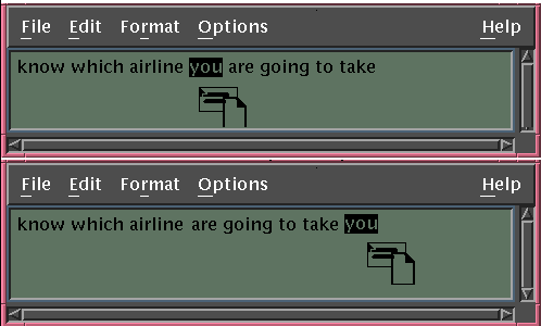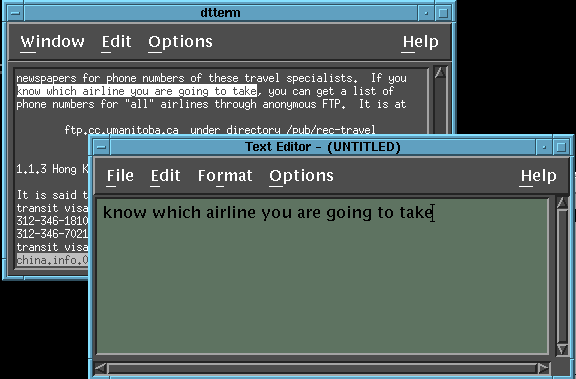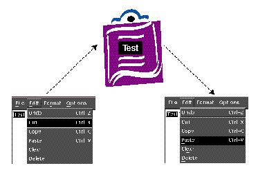 For example, a user can select a paragraph in help text, move the mouse pointer to the target area in another window, and transfer the paragraph by pressing the TRANSFER button.