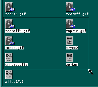 With the area swipe technique, the user presses the SELECT button on the location where the boundary is to begin and moves the pointer, creating a framing rectangle (or marquee) between the two corners (some implementations might have a boundary shape other than a rectangle). The area swipe technique is useful in containers and graphics scopes.